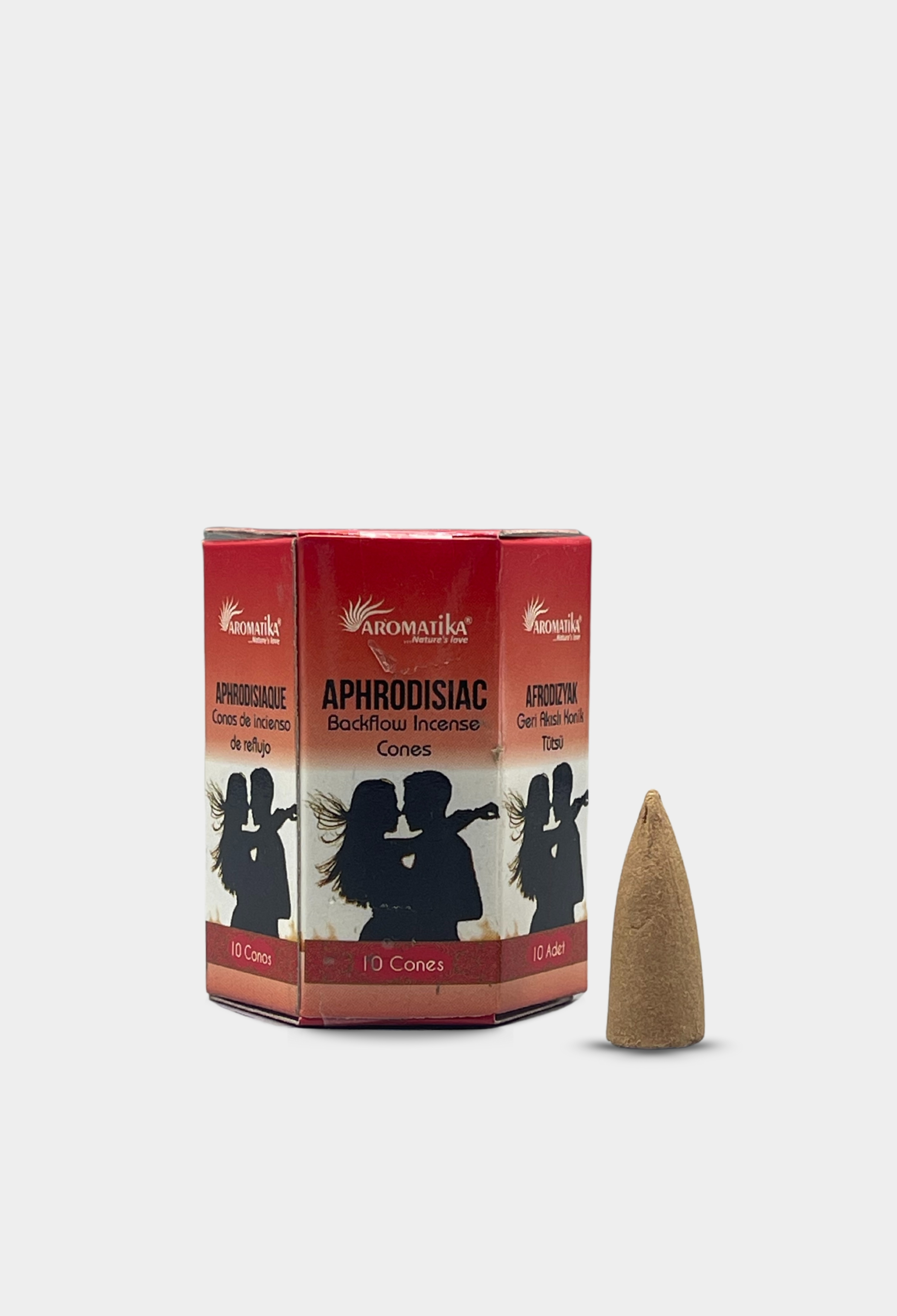 “Afrodizyak Geri Akış Tütsü”, kokusuyla olduğu kadar dumanıyla da baştan çıkarıcıdır. Aşağıya süzülen yavaş duman, bulunduğu ortama gizemli bir çekicilik ve yumuşak bir sıcaklık katar. Tensel ve duygusal enerjiyi harekete geçirir, anın enerjisini dönüştürür. Kömür tozu içermeyen doğal formülüyle hem huzurlu hem etkileyici bir deneyim sunar.