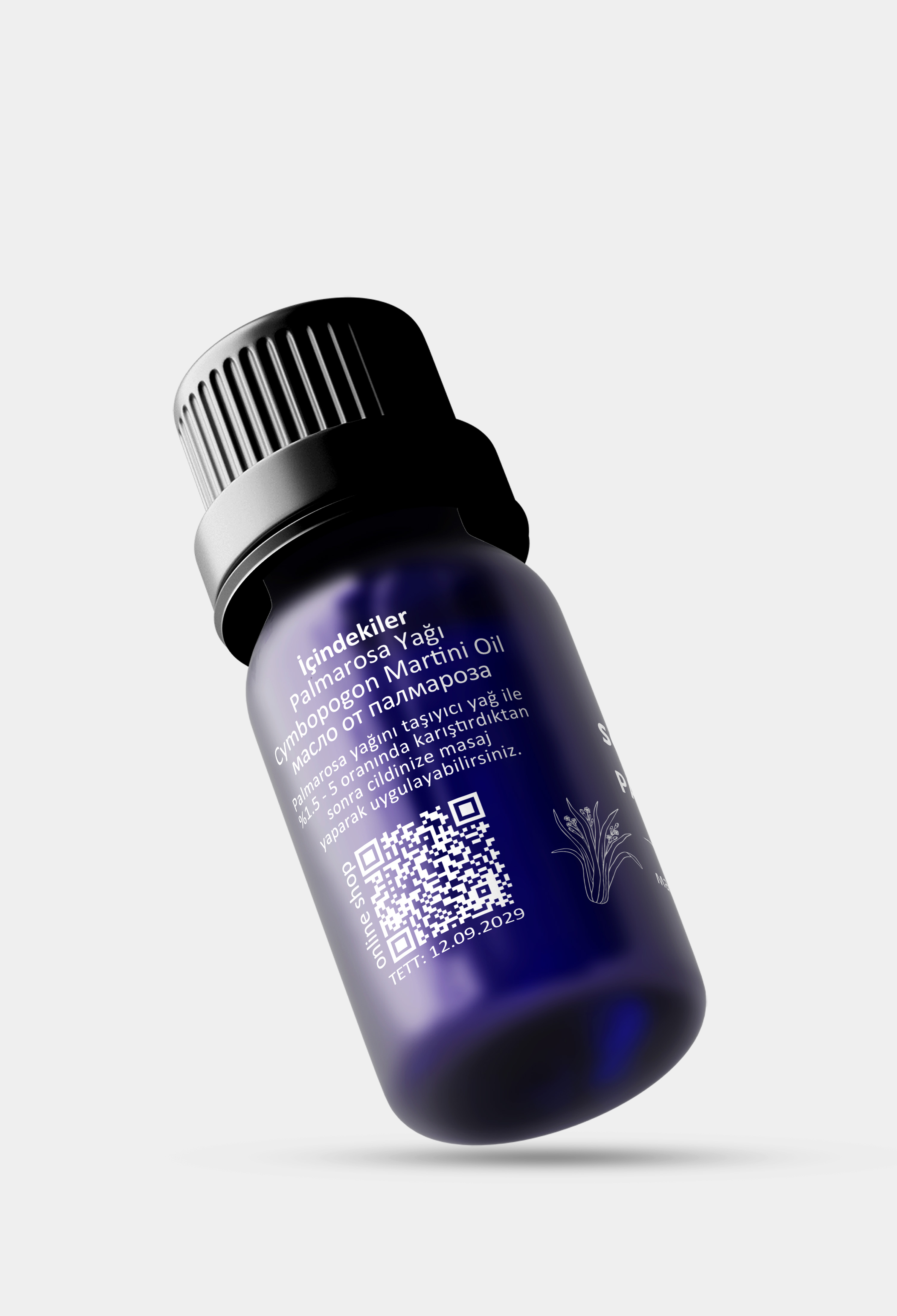 Palmarosa bitkisinin taze yapraklarından buhar distilasyonu yöntemiyle elde edilmiştir. Ürün, katkı maddesi, sentetik esans veya koruyucu içermez. Tatlı, çiçeksi ve hafif limonsu kokusuyla öne çıkan bu uçucu yağ, UV korumalı cam şişede sunulmuştur.
